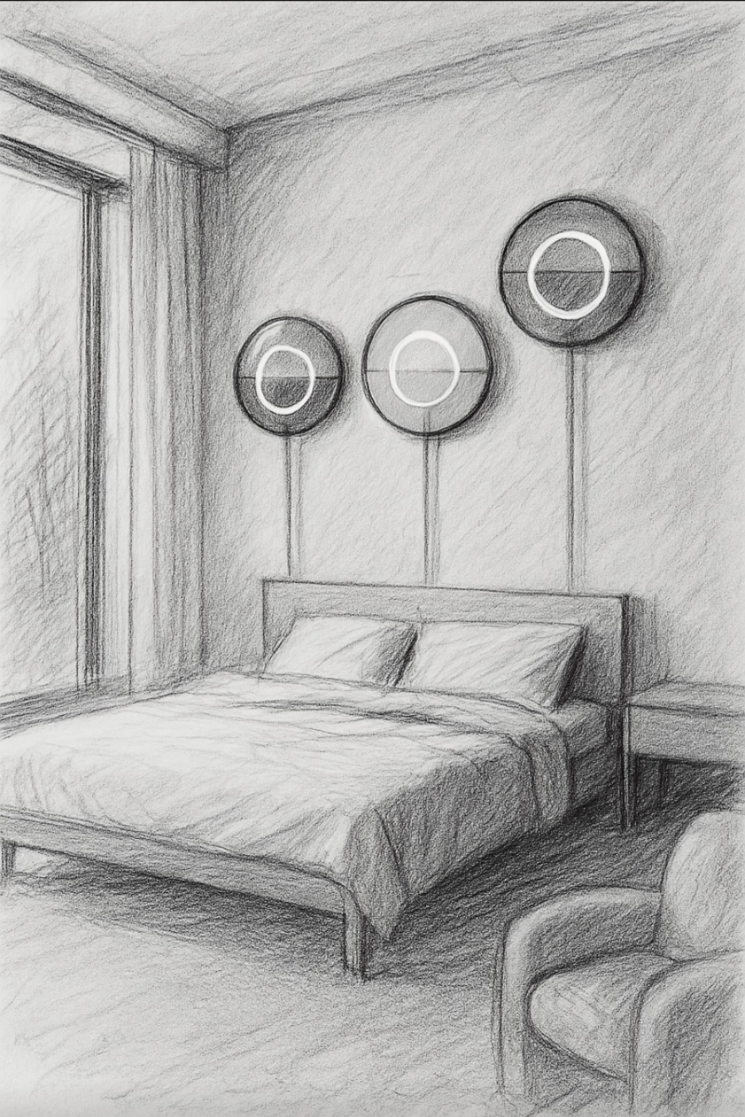 Ici, la lumière n’est pas un simple effet : elle est la matière première de la composition, suspendue entre peinture, design et architecture.