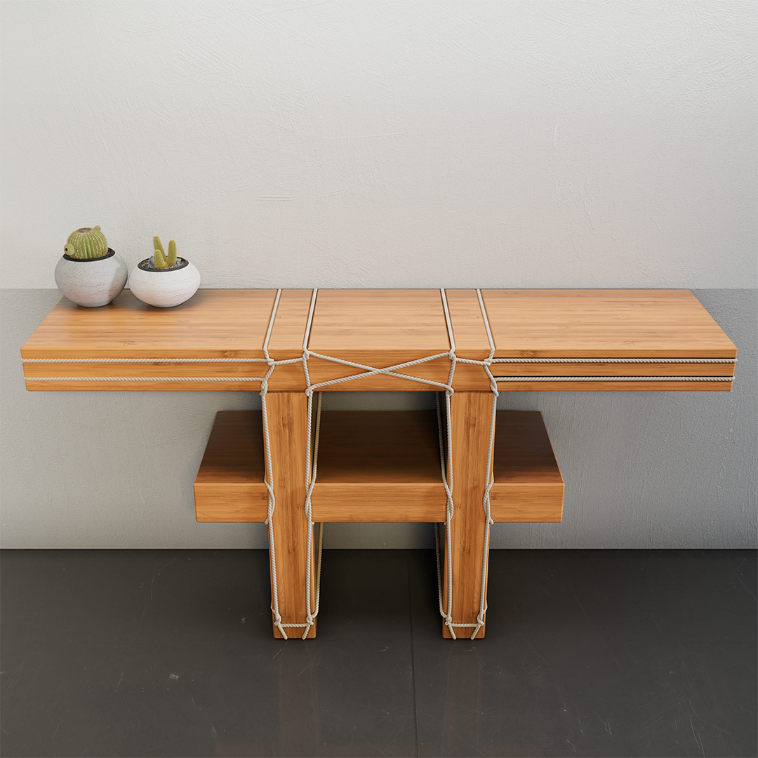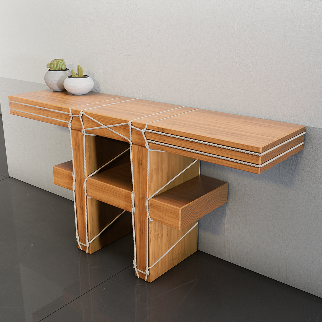 Pour ColAAb, Morgane Tschiember a réalisé dans un esprit minimaliste, entre art et design, la collection “Shibari” (banc, tabouret, table et console) inspirée de l’enseignement qu’elle a reçu des jardiniers japonais pendant sa résidence à la Villa Kujoyama à Kyoto.